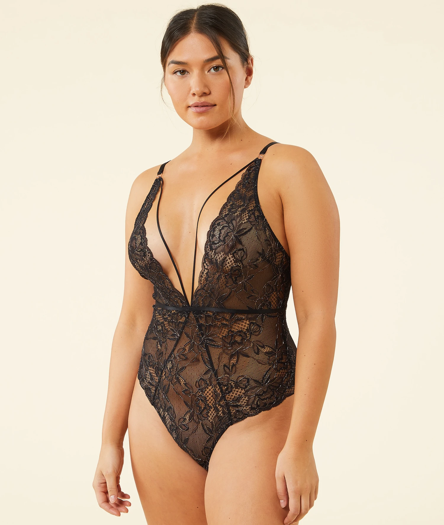 Déjà iconique, ce body au décolleté plongeant dévoile une sublime dentelle fleurie, et des liens sensuels. Muni de bretelles ajustables, il affiche un dos ouvert et délicatement lacé.