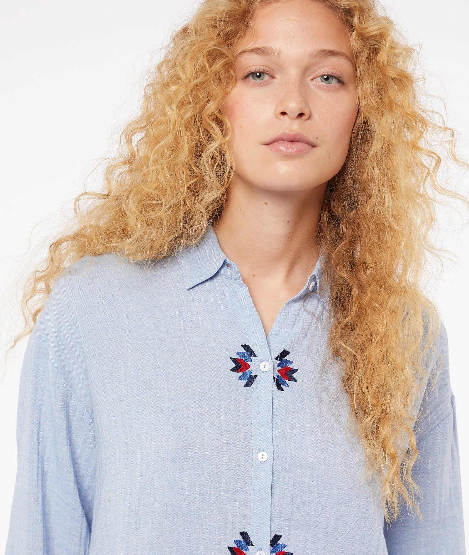 Succombez à la douceur et à la légèreté de cette chemise de nuit. Munie de manches longues et d’une fermeture boutonnée, elle dévoile des broderies colorées.