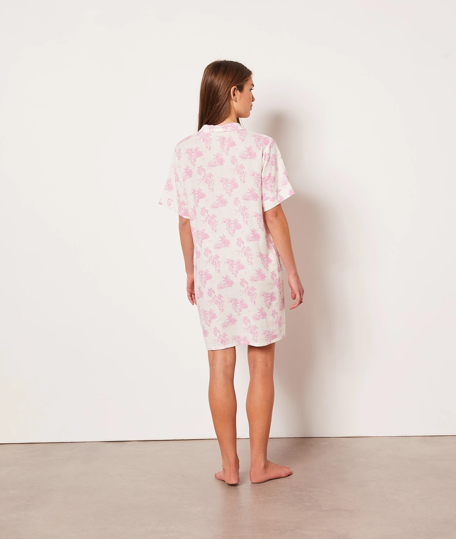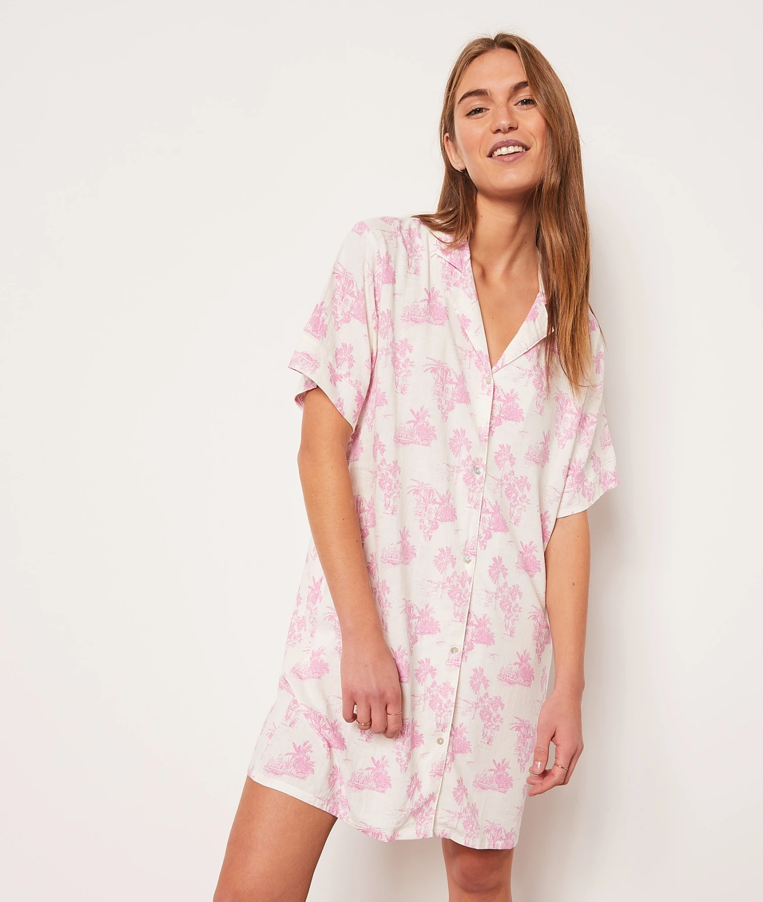 Incontournable de la saison, l’imprimé Toile de Jouy s’invite dans vos nuits. Légère et agréable à porter, elle est munie de manches courtes et d’une fermeture boutonnée.