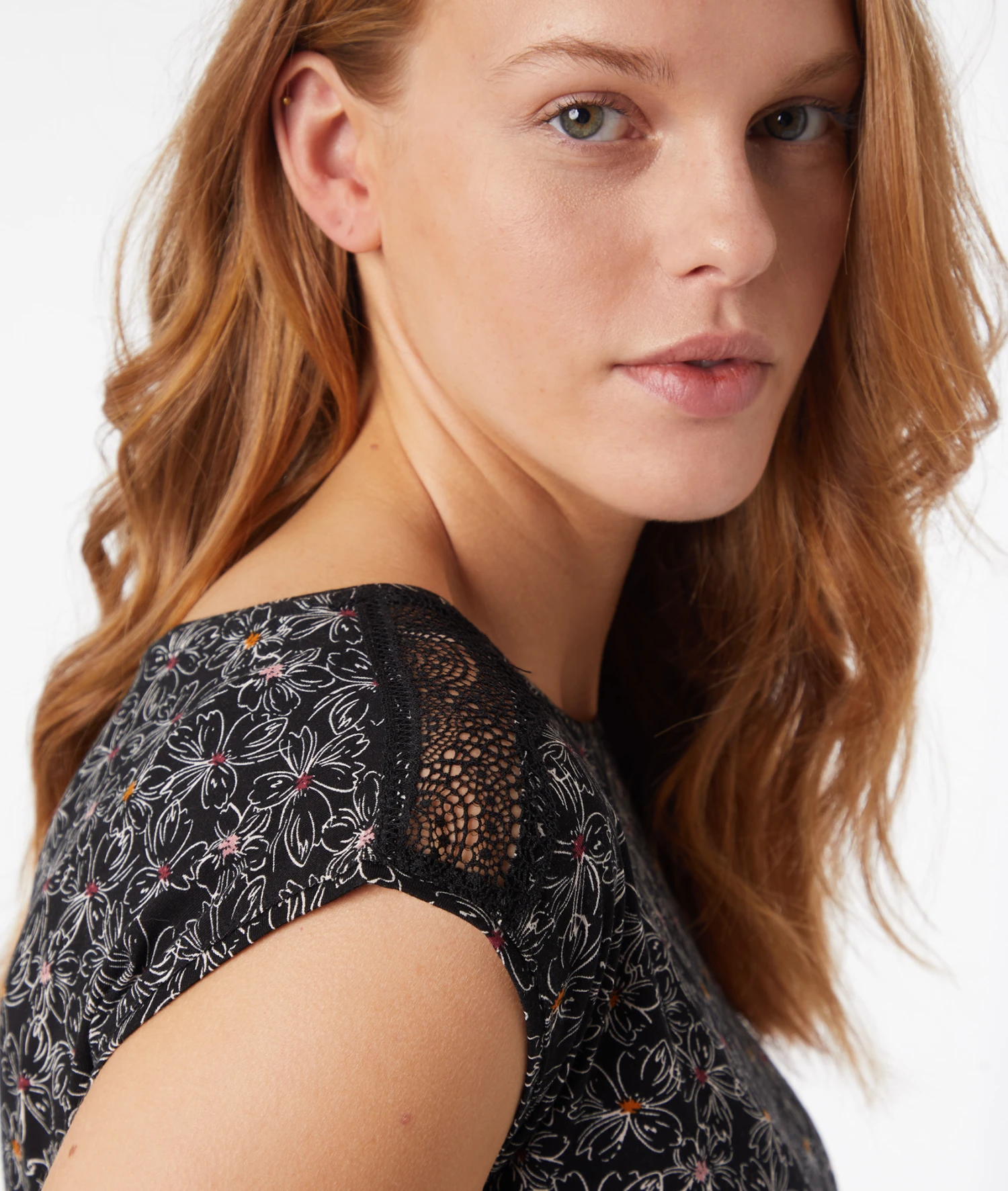 Idéale pour les nuits d’été, cette chemise de nuit munie d’un col rond et de manches courtes dévoile des fentes sur les côtés.