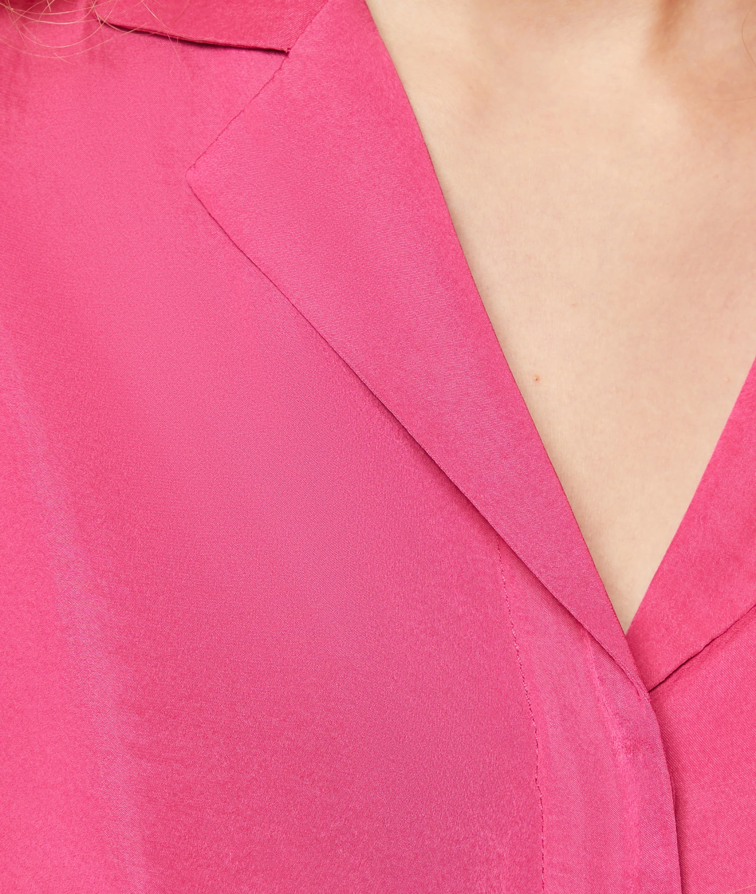 Fluide et satinée cette chemise de pyjama courte et boutonnée est munie de manches trois quarts, et s’adopte en total look avec le pantalon coordonné.