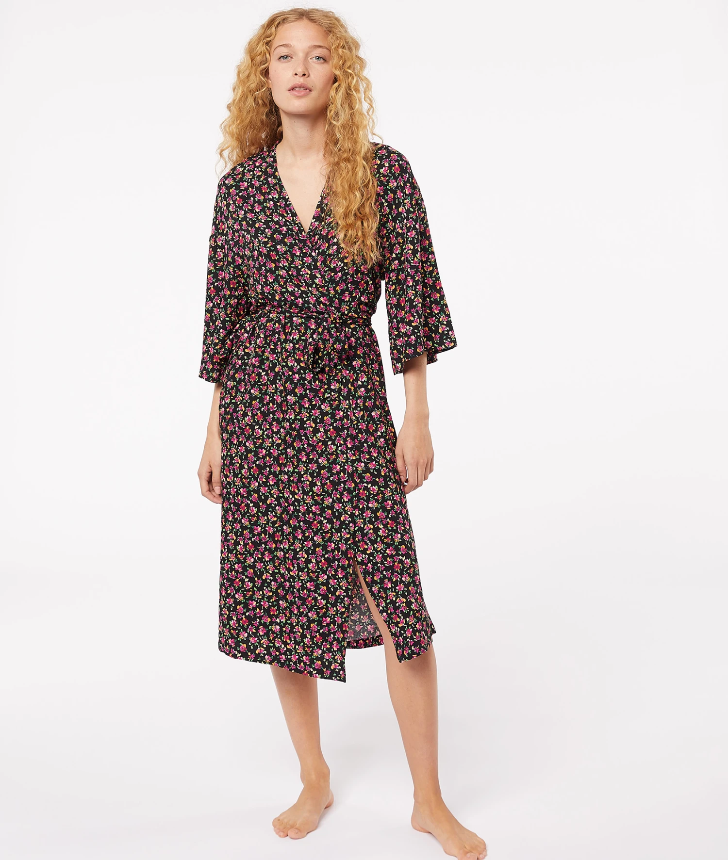 Un déshabillé à glisser sur son pyjama pour cocooner avec style. Orné d’un imprimé fleuri, il est muni de manches longues et d’une ceinture amovible à la taille.