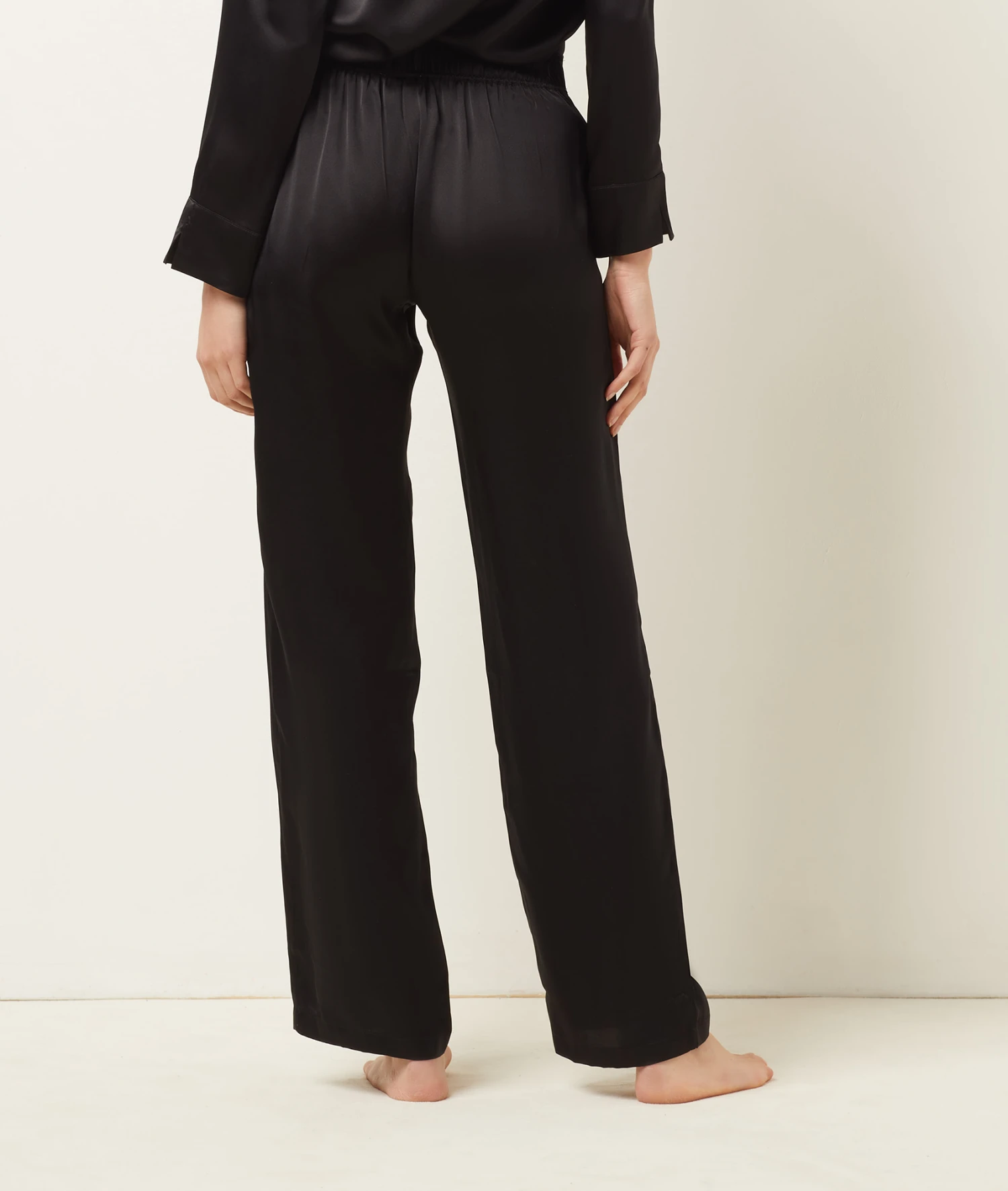 Fluide et léger, ce pantalon de pyjama muni d’un élastique à la taille allie confort et élégance pour des nuits douces et chics.