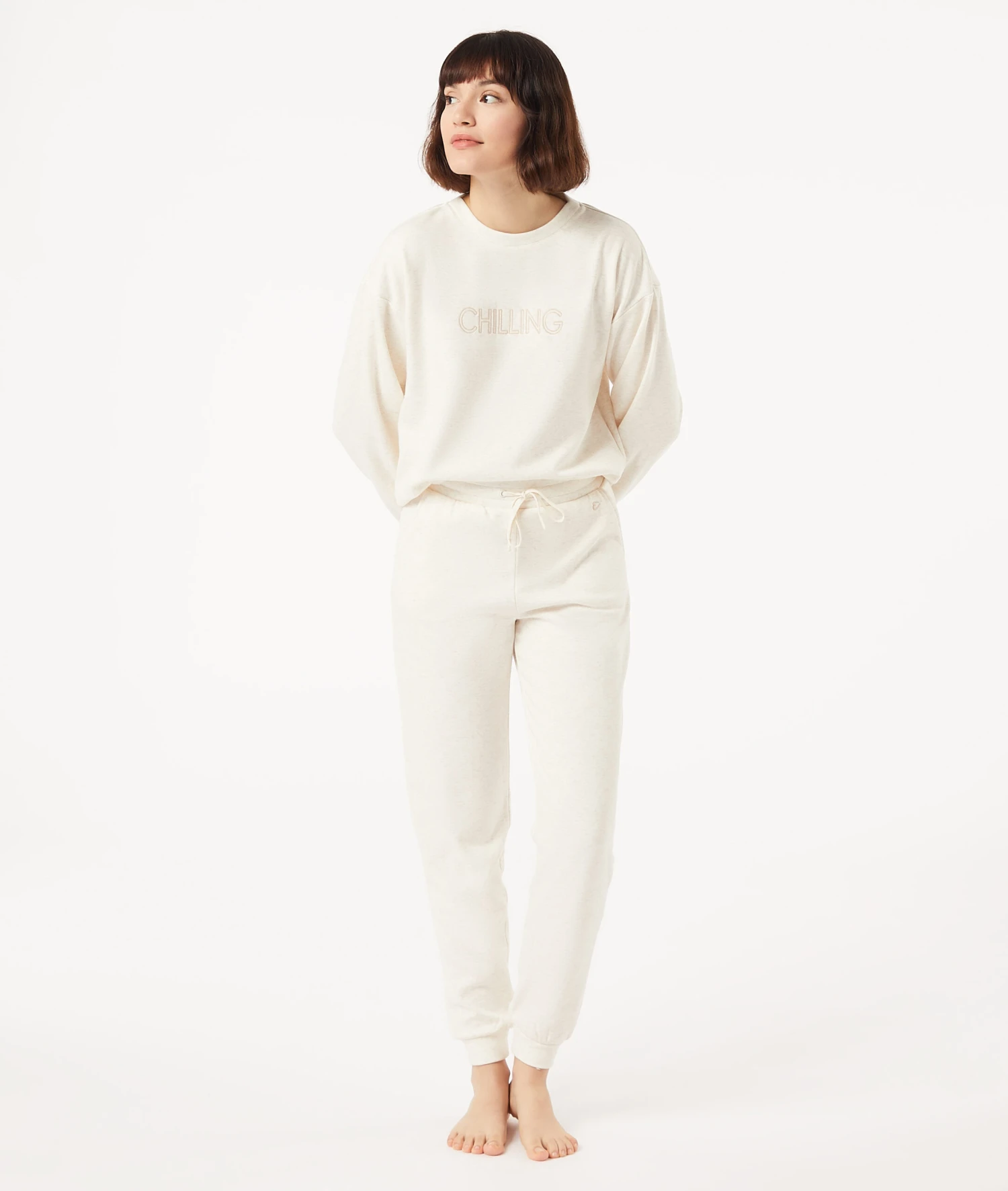 Taille haute, resserré aux chevilles, muni de poches et d’un cordon à nouer : l’incontournable pantalon jogger est l’allié cocooning parfait. Molletonné il promet un confort incroyable ainsi que des journées et des nuits tout en douceur.